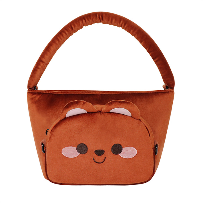 定制羊蓋絨手拎包搖粒絨熊貓可愛充棉手提包單肩包毛絨公仔包