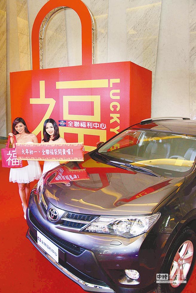 全聯(lián)今年春節(jié)檔期則有2個創(chuàng)舉,一是福袋,一是抽汽車。全聯(lián)表示,消費滿500元,就有抽汽車的機會;初一當(dāng)天,購買內(nèi)容物價值200元的百元福袋,總計7萬個,也有一個抽中汽車機會,今年總計送出2輛汽車。全聯(lián)強調(diào),只要花100元買福袋,就可抽價值102萬元的汽車,投資報酬率最高,預(yù)估初一當(dāng)天,也許半小時福袋就會銷售一空。預(yù)估業(yè)績至少成長一成以上。